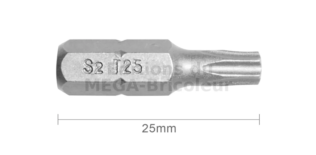 Embout T25 25mm (Qualité Professionnelle, Acier S2) - lot de 1 embout - Réf. EmboutT25_1
