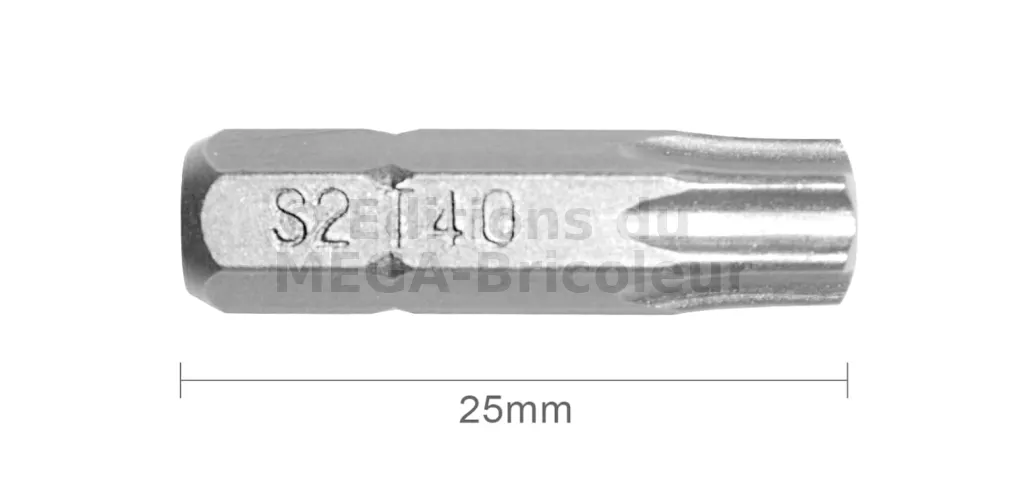Embout T40 25mm (Qualité Professionnelle, Acier S2) - lot de 5 embouts - Réf. EmboutT40_5