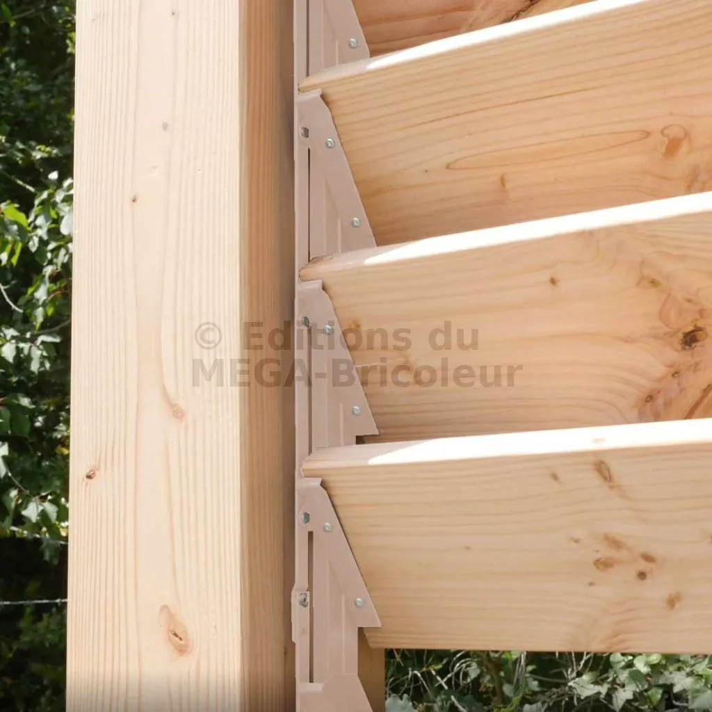 Solide, durable, résistant aux UV. Ce mécanisme vous permet de construire vous-même votre pergola bioclimatique, vos brises-vues ou volets à lames orientables, à votre goût et à vos mesures. Ils supportent des lames en bois ou en aluminium.