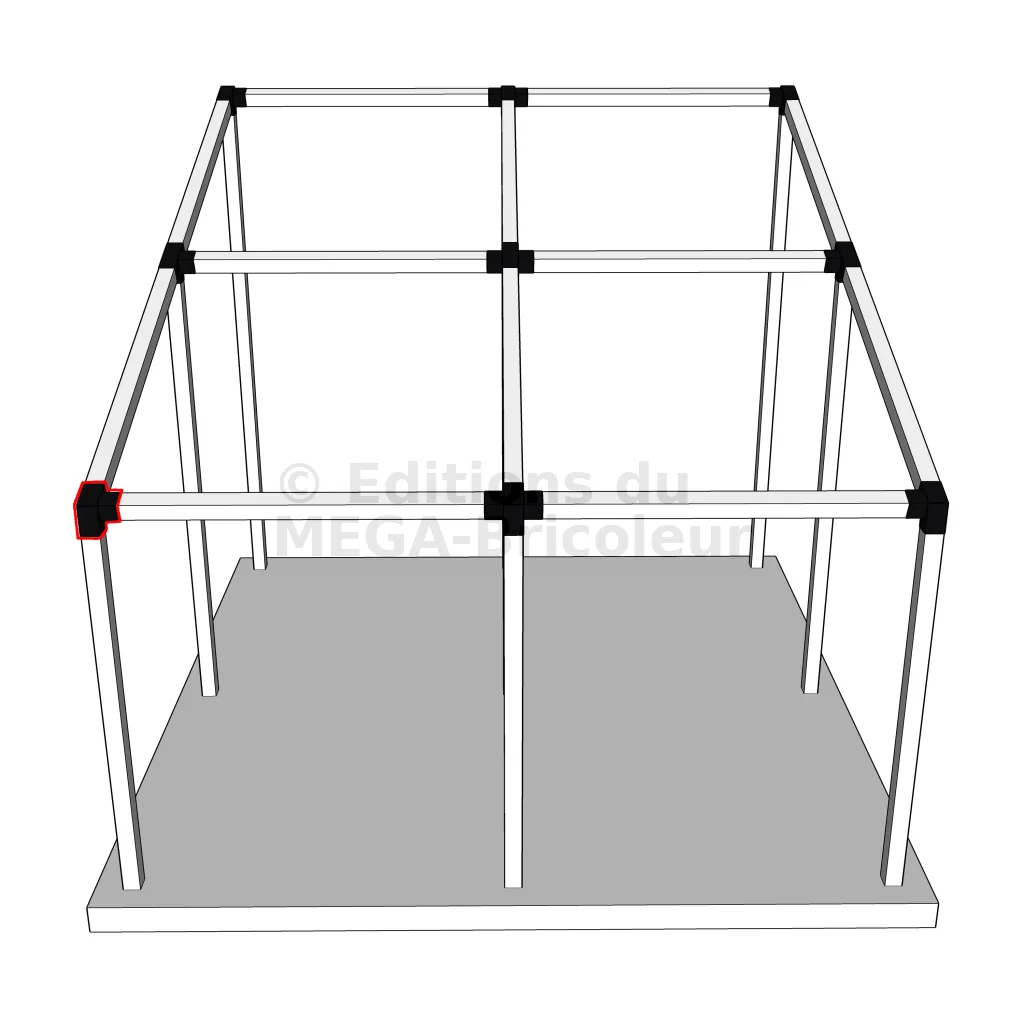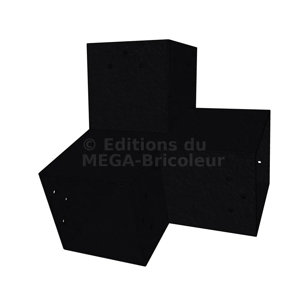 Il est utilisé dans un angle extérieur. Ce connecteur va permettre de raccorder une poutre 120x120mm à une poutre 120x120mm avec une pente de 20°, le tout étant supporté par un poteau vertical 120x120mm.