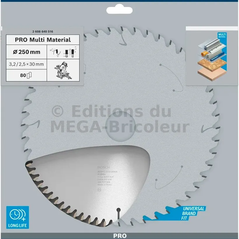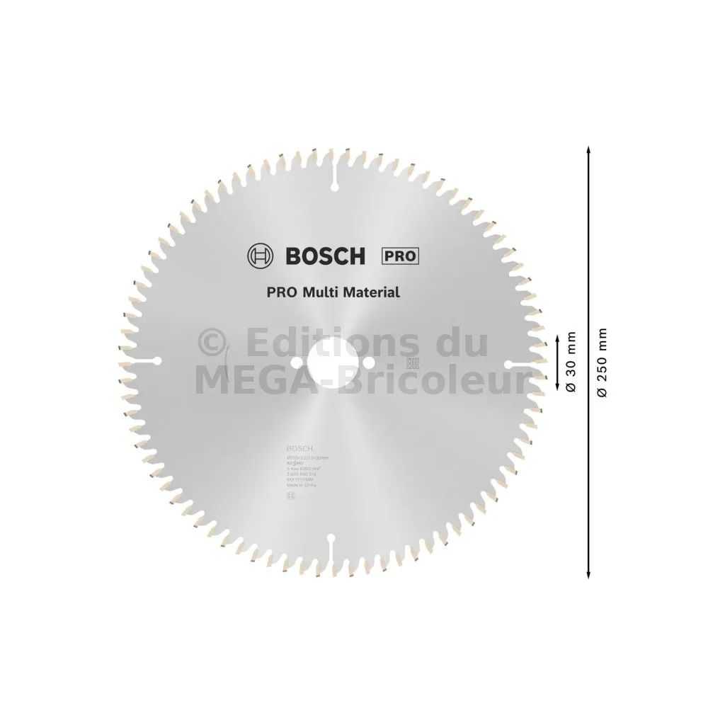 Lame de scie circulaire PRO 250 x 30 x 3.2 mm - 80 dents - Multi matériaux - Réf. 2608640516