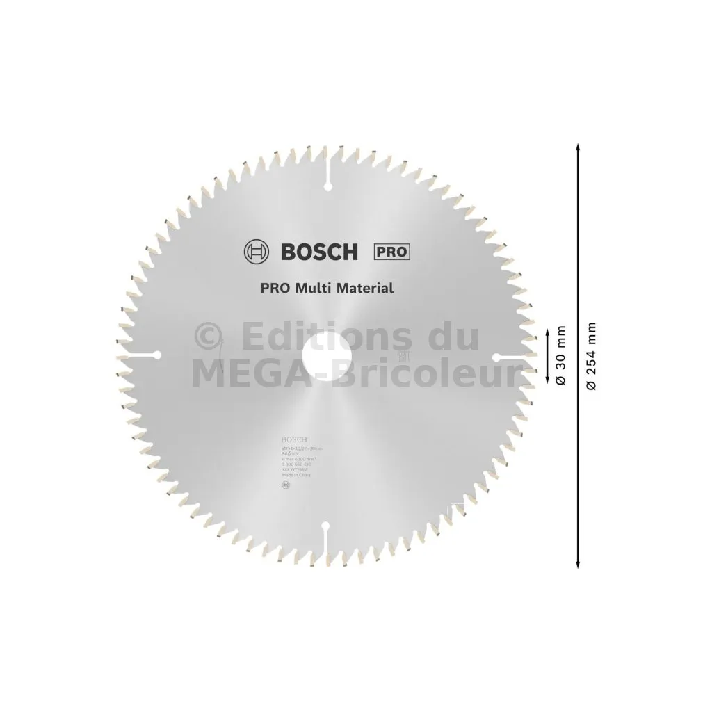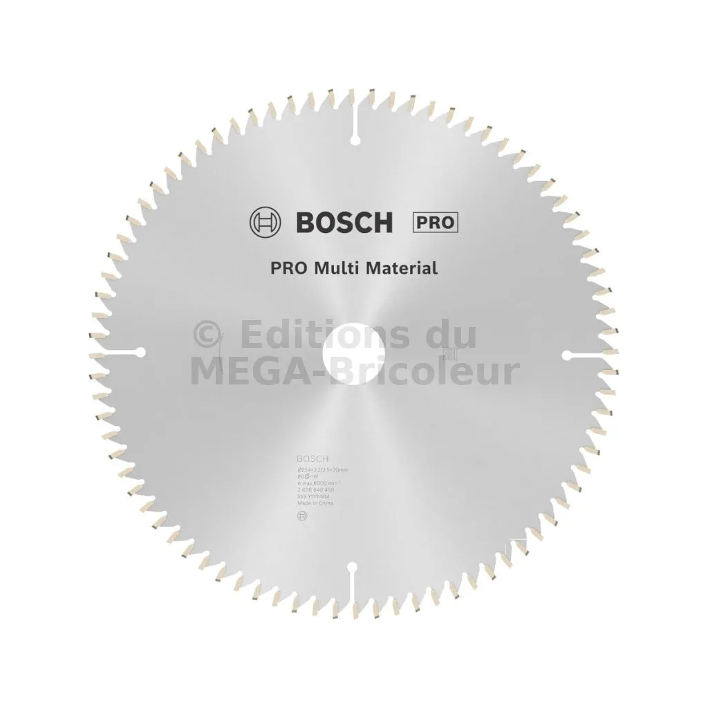 Lame de scie circulaire PRO 254 x 30 x 3.2 mm - 80 dents - Multi matériaux - Réf. 2608640450