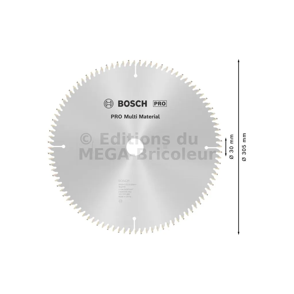 Lame de scie circulaire PRO 305 x 30 x 3.2 mm - 96 dents - Multi matériaux - Réf. 2608640453