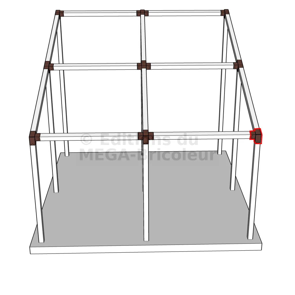 Il est utilisé dans un angle extérieur. Ce connecteur va permettre de raccorder une poutre 90x90mm à une poutre 90x90mm avec une pente de 20°, le tout étant supporté par un poteau vertical 90x90mm.