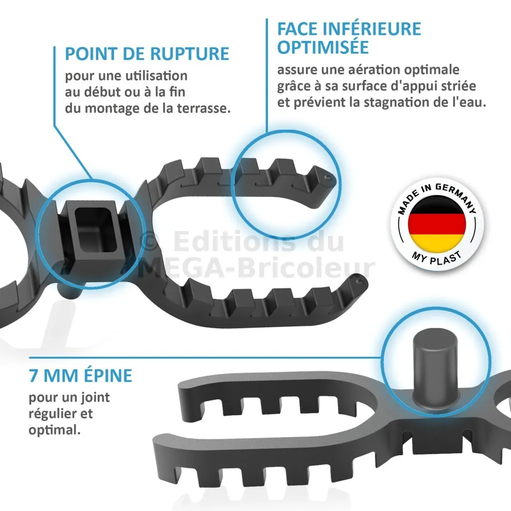 Cales d’espacement 7 mm pour lames de terrasse – version ouverte / rainurée – Sachet de 100 - Réf. ABST-7MM-100-OFFEN