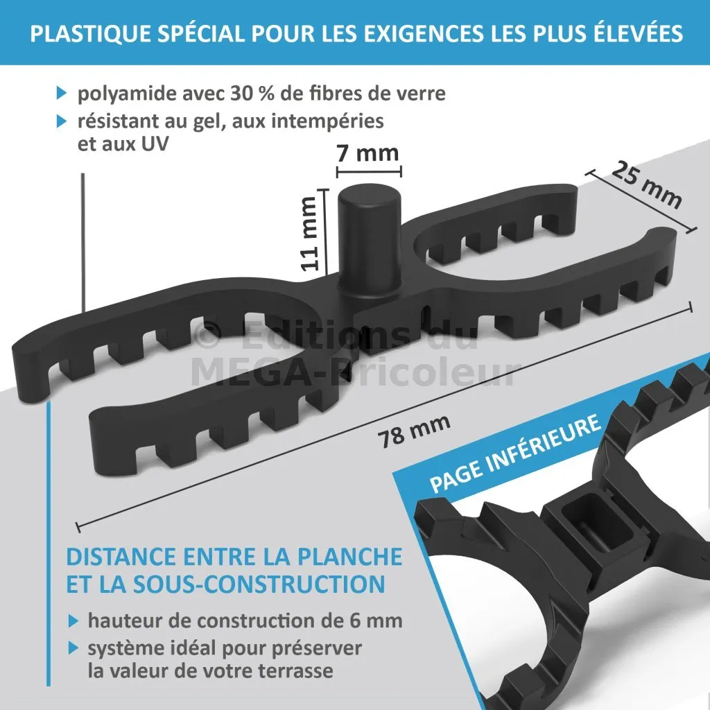 En cas de doute, choisissez les cales de 4 mm : si les lames gonflent jusqu’à se toucher, cela peut provoquer des déformations du bois et endommager la terrasse.