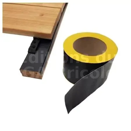 Bande d’étanchéité auto-adhésive 75 mm × 10 m – protège vos lambourdes contre l’humidité et prolonge la durée de vie de votre terrasse.