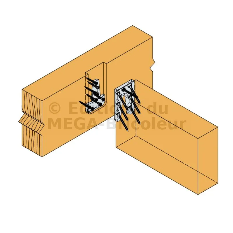 - Fixation bois/bois - type poteau/poutrePorteur : 9 x CNA4,0X50 ; Porté : 6 x vis 5,0x80