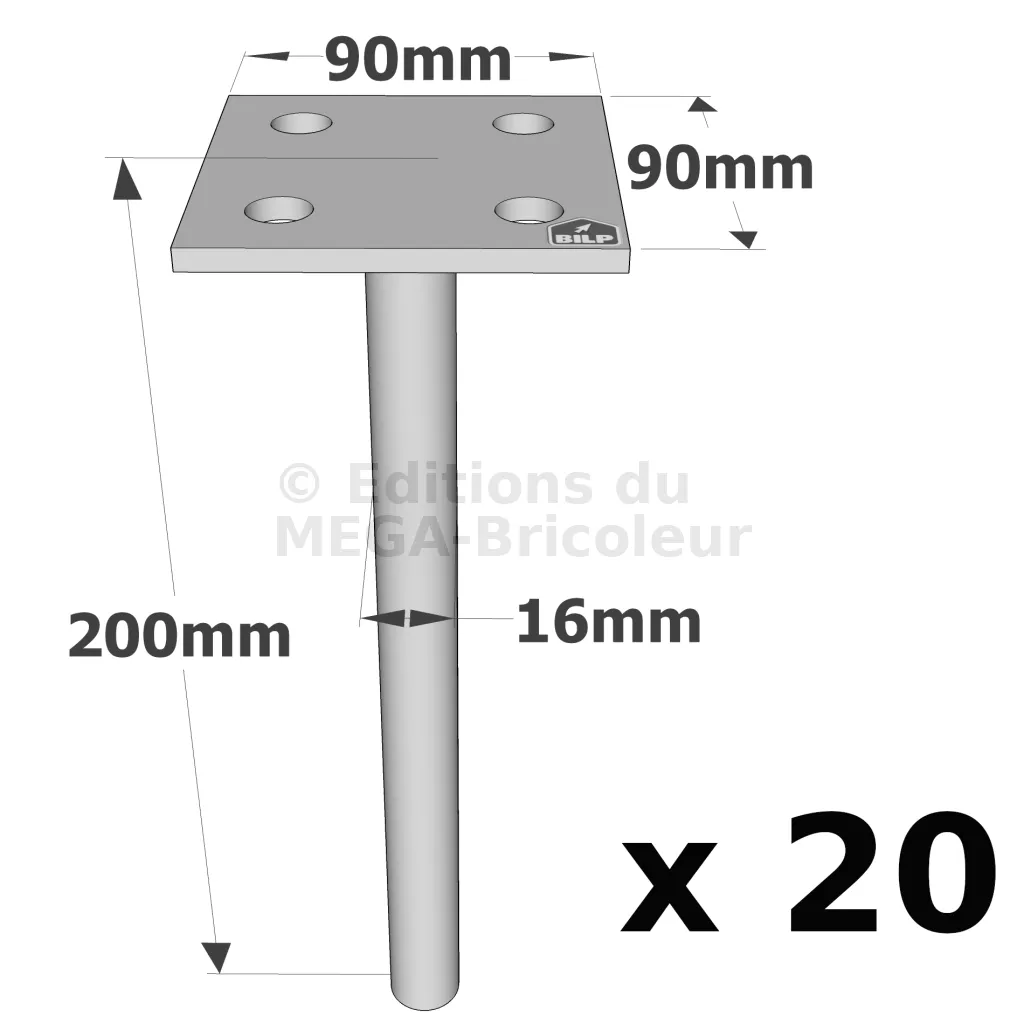 Pieds de poteau à sceller simple platine - Réf. PPSP90_20