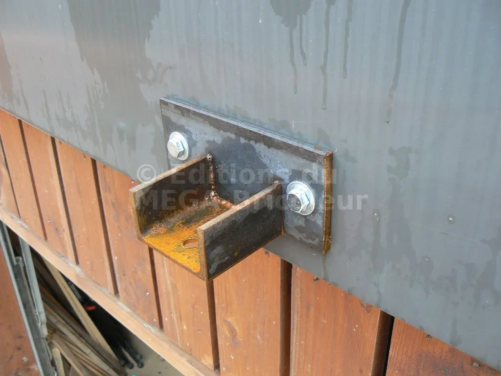 3. Si le support est en bois, l’équerre est aussi pointée ou vissée sur celui-ci.