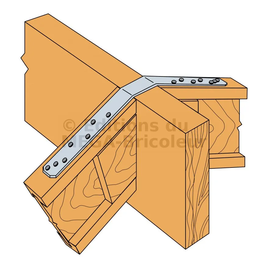 Le feuillard prédécoupé LSTA permet, entre autre de reprendre les efforts à la traction dans le cas par exemple de poutres utilisées en chevron contre panne faitière.