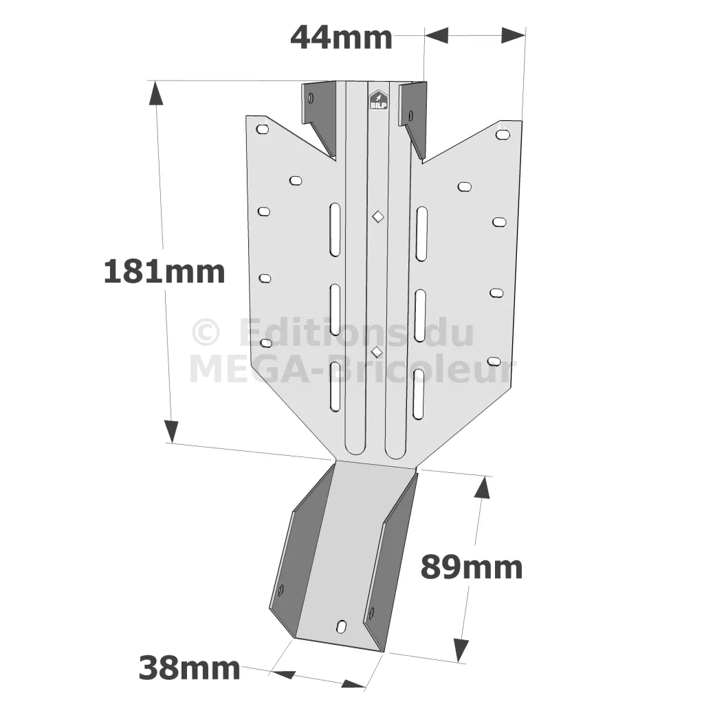- Les trous oblongs permettent le clouage en biais si nécessaire.