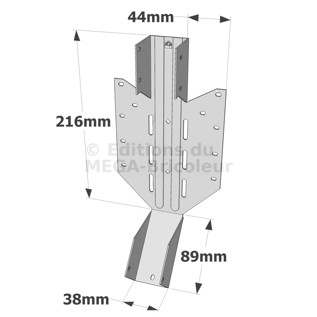 - Les trous oblongs permettent le clouage en biais si nécessaire.
