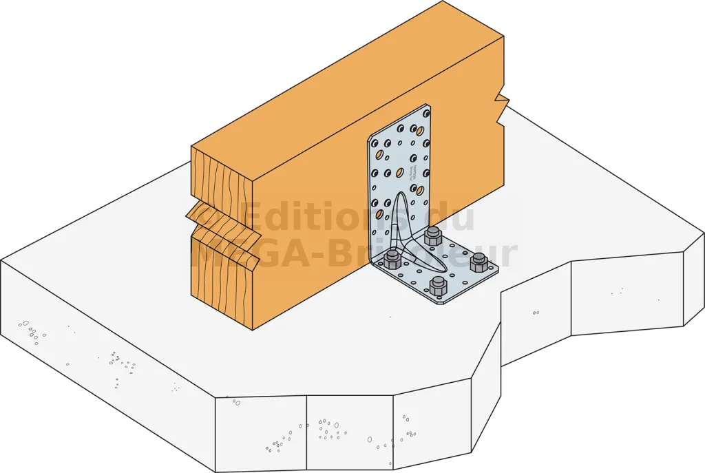 - Fixation BOIS/support rigide - clouage total2 équerres ; Aile A : 12CNA Ø4.0x35 ou Ø4.0x50 mm ; Aile B : 1Ø10 (boulon ou tirefond)
