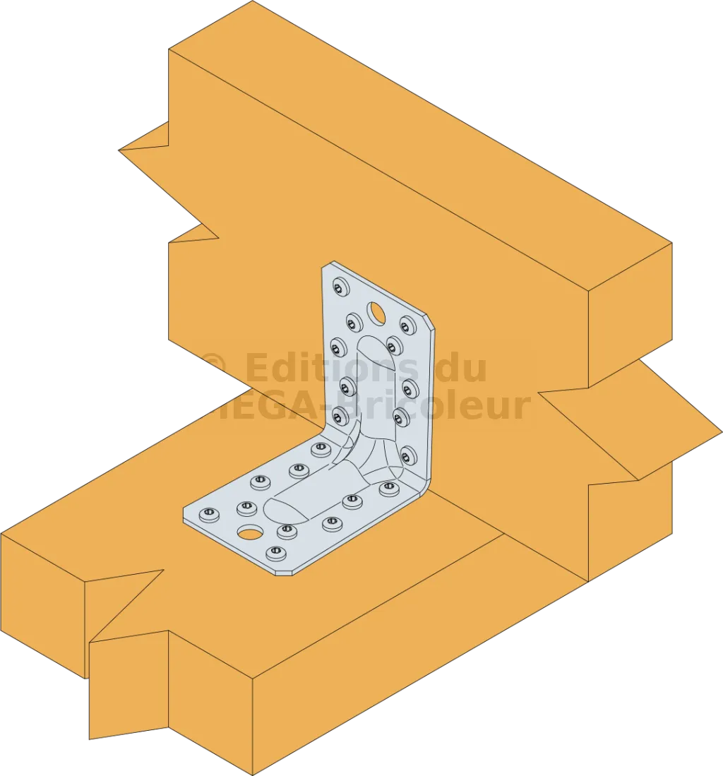 3. Si le support est en bois, l’équerre est aussi pointée ou vissée sur celui-ci.