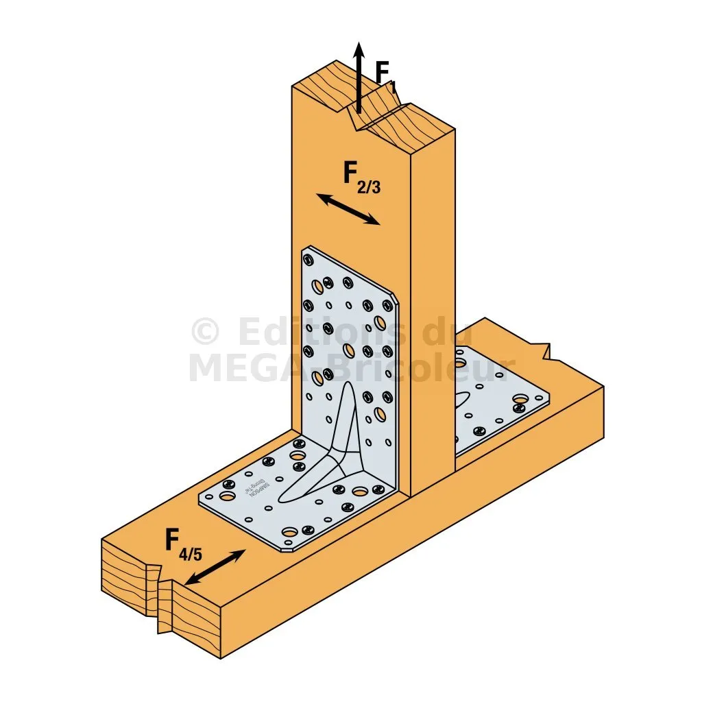 Les équerres renforcées E9 permettent des liaisons structurelles d’éléments de charpente ou de montants d’ossature bois.