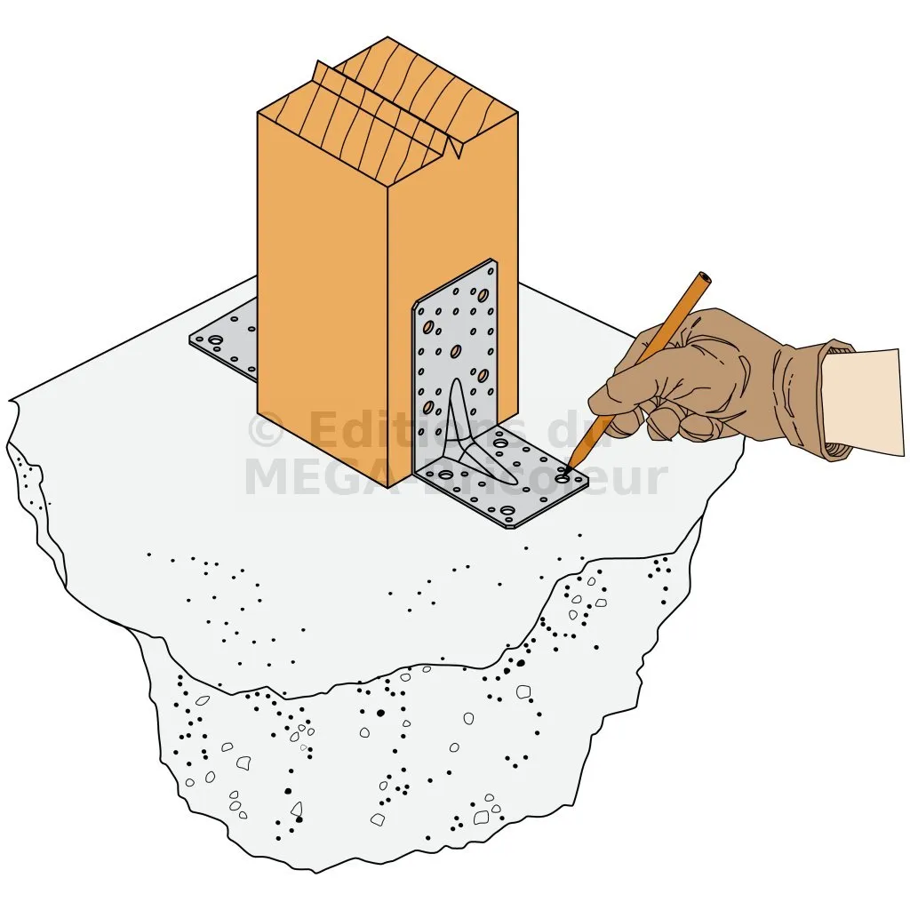 3. Si le support est en bois, l’équerre est aussi pointée ou vissée sur celui-ci.
