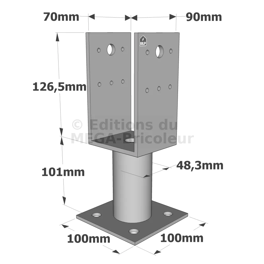 Pieds de poteau en U avec platine - Réf. PPUP90