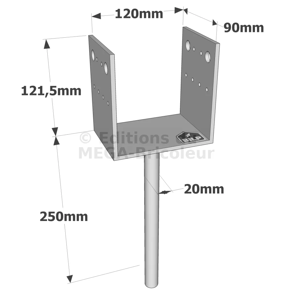 Pieds de poteau en U à sceller - Réf. PPD120/90G
