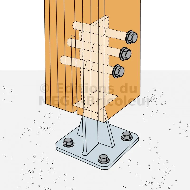 1. Fixer le pied de poteau au poteau,