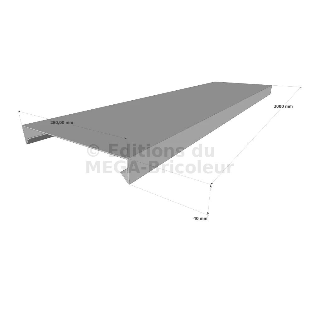 Couvertine d’acrotère plate - Gamme 280 - Aluminium 15/10 - Longueur 2000mm - Réf. CP15-280-2000
