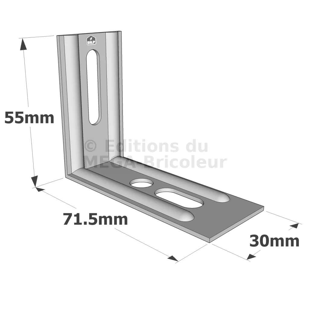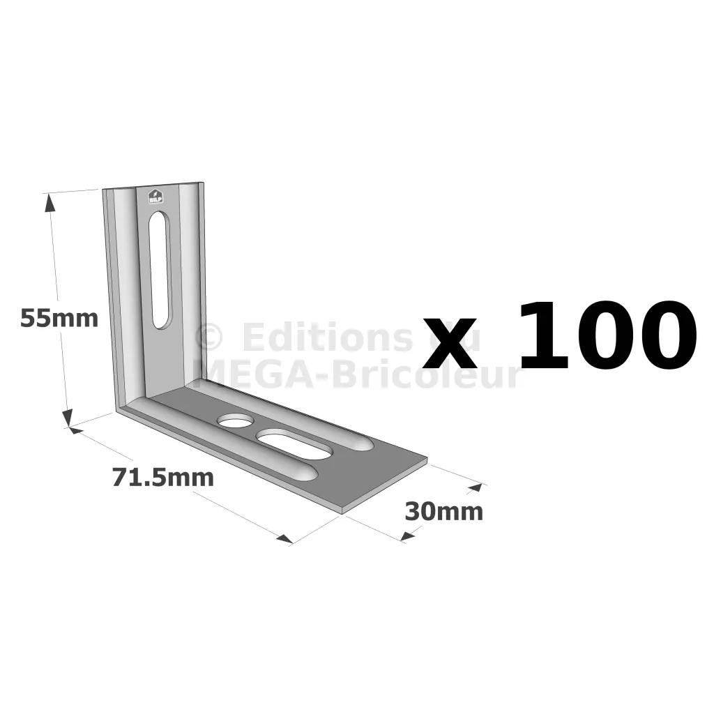 - Trous oblongs facilitant l’ajustement des assemblages,