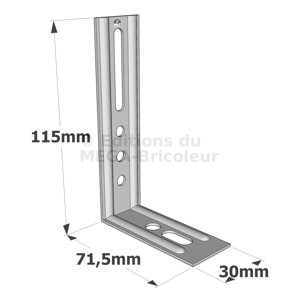 - Trous oblongs facilitant l’ajustement des assemblages,