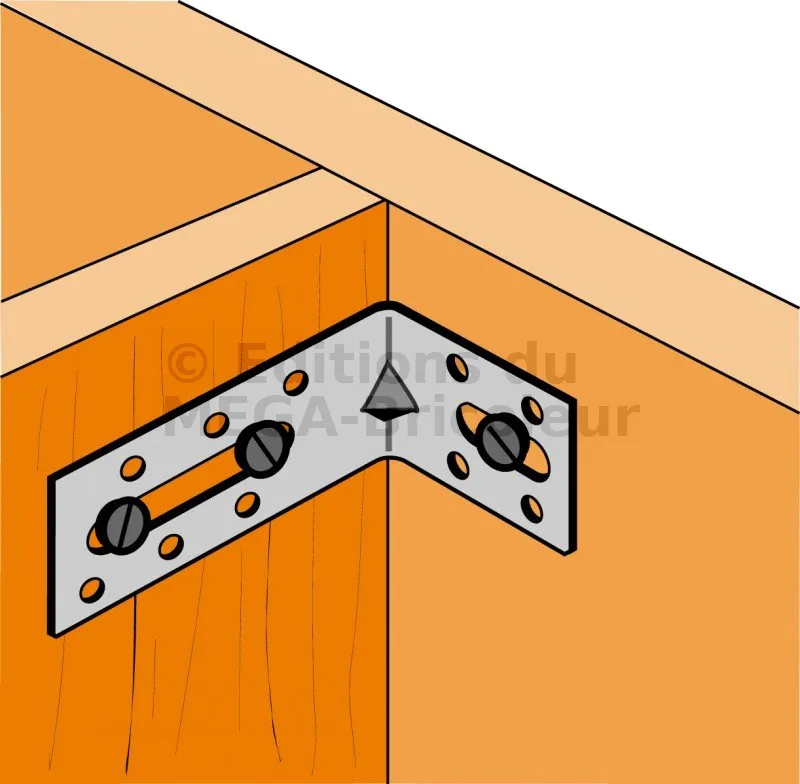 3. Si le support est en bois, l’équerre est aussi pointée ou vissée sur celui-ci,