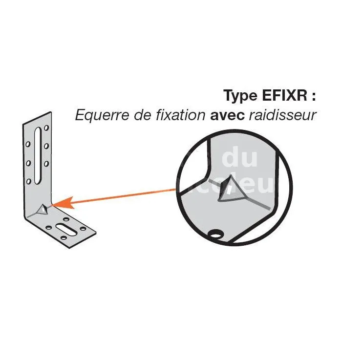 L’équerre de fixation EFIXR est destinée à tous les assemblages d‘agencement et de pose de menuiseries intérieures et extérieures. Le raidisseur de l‘EFIXR augmente la rigidité en particulier pour les grands modèles.