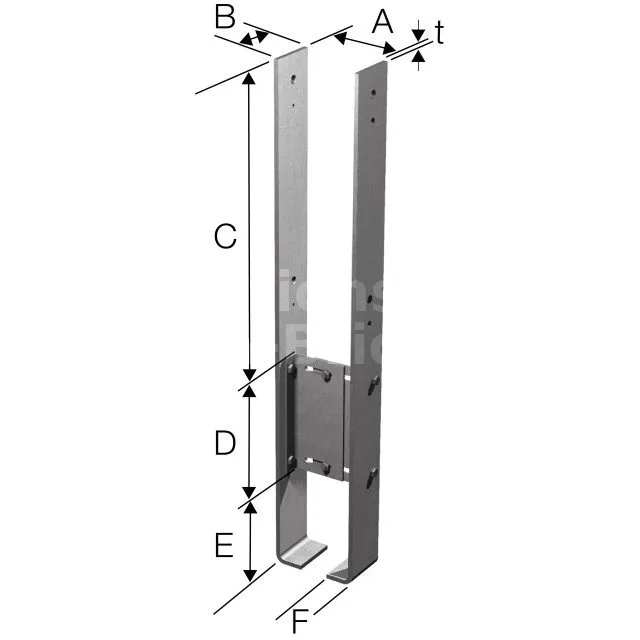 | Pied de poteau réglable largeur CMS70-120G | Réglage 70-120 mm, patte de scellement intégrée, idéal petits poteaux |