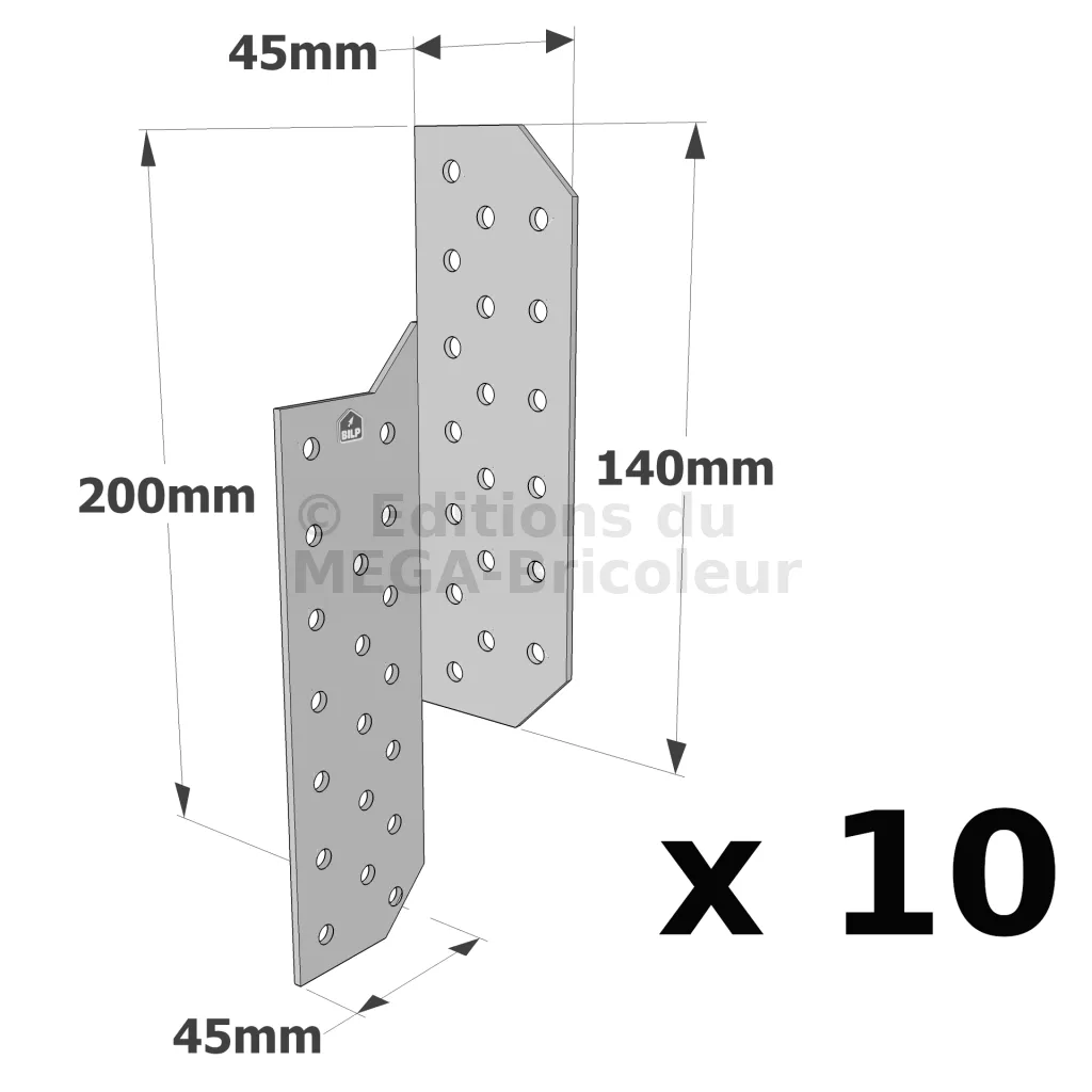Patte de solivage GAUCHE - 45x200x2mm - Réf. PSG200/45/2_10