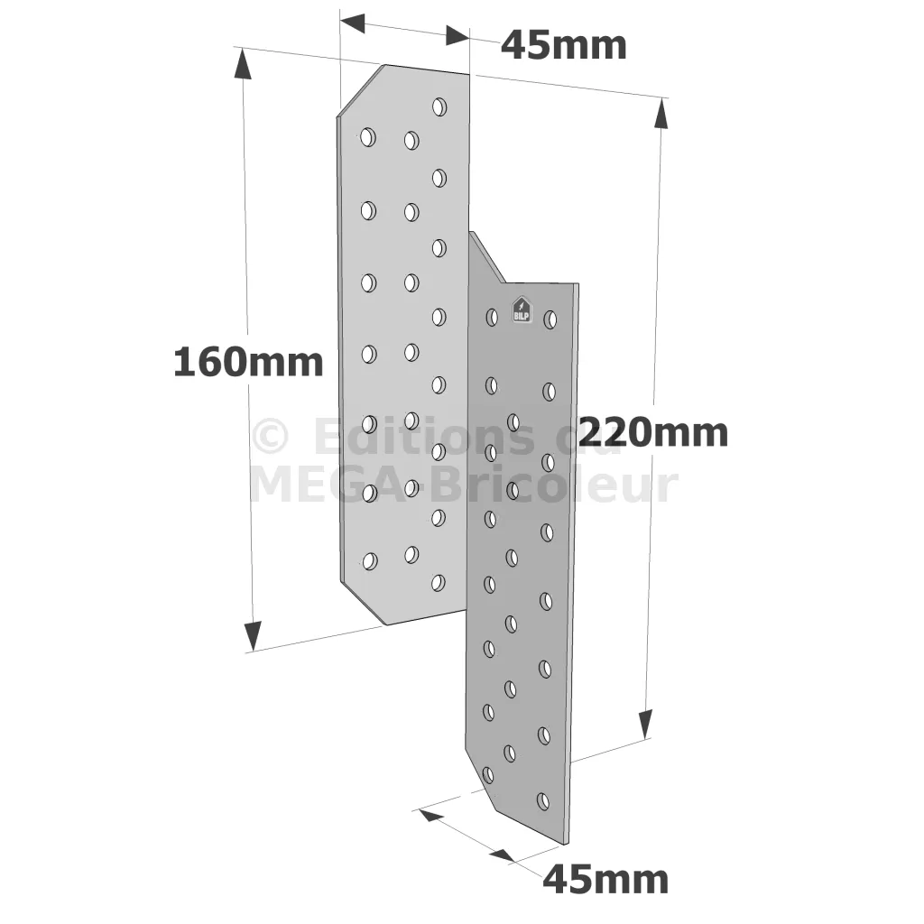 Patte de solivage DROITE - 45x220x2mm - Réf. PSD220/45/2_10
