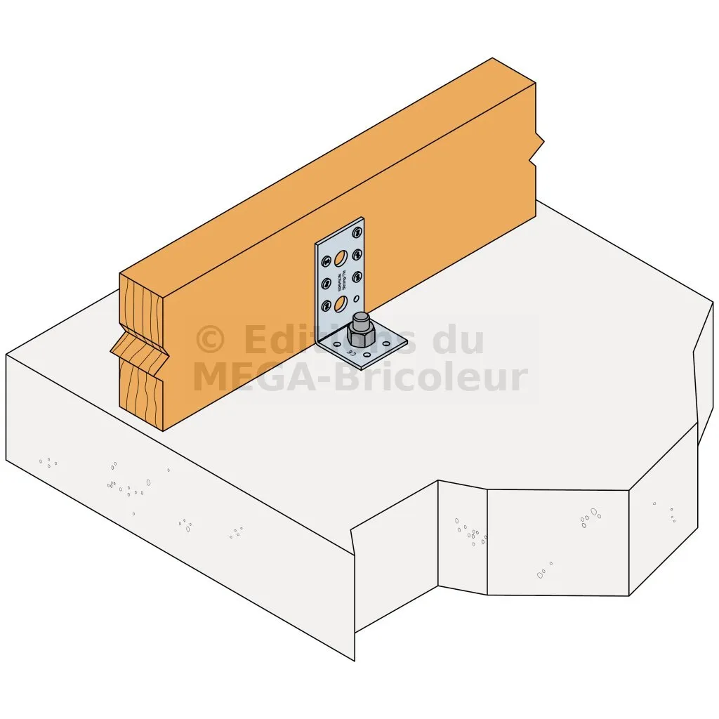 3. Si le support est en bois, l’équerre est aussi pointée ou vissée sur celui-ci,