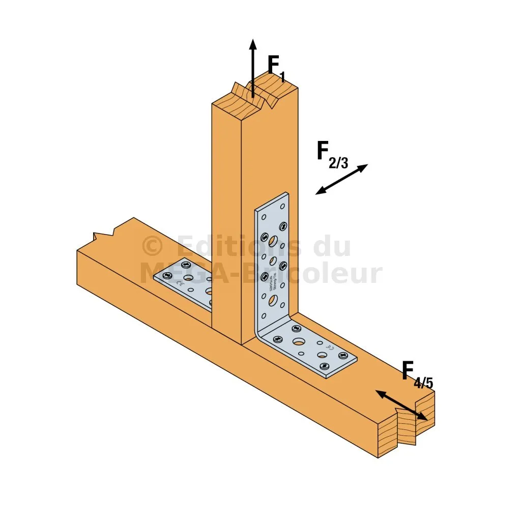 F4 et F5 : effort transversal dirigé vers ou à l’opposé de l’équerre