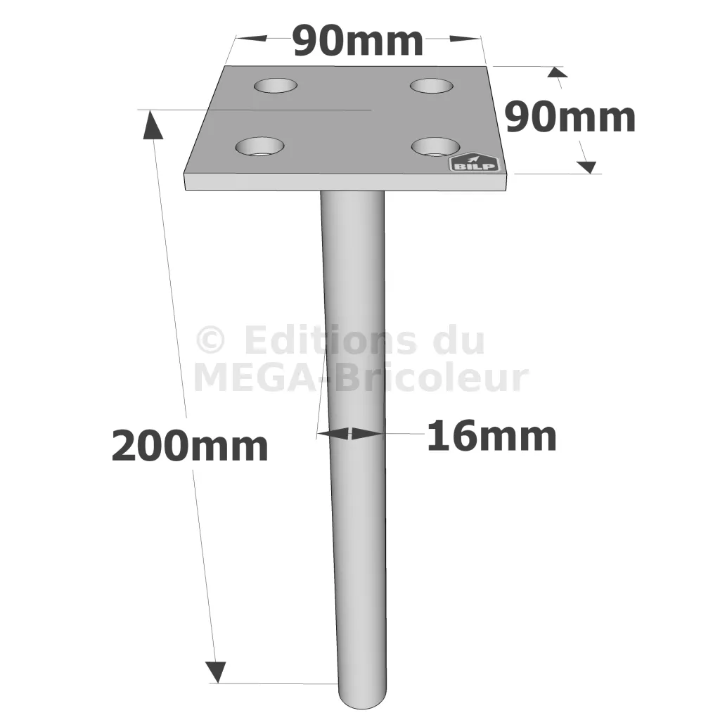 Pieds de poteau à sceller simple platine - Réf. PPSP90