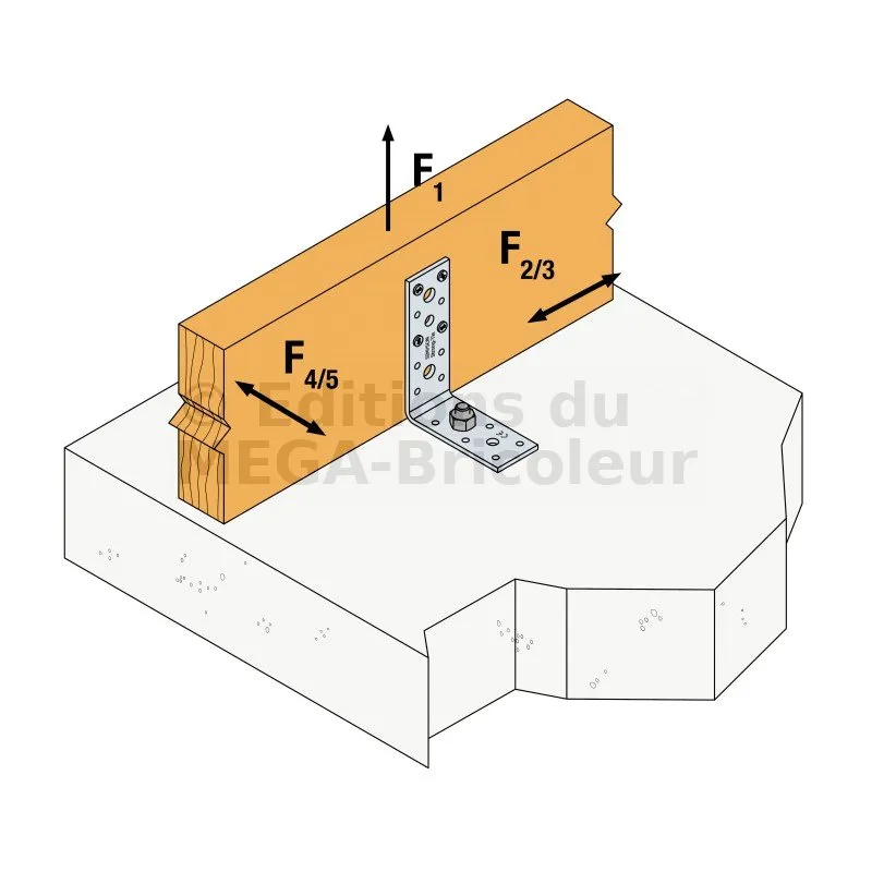 3. Si le support est en bois, l’équerre est aussi pointée ou vissée sur celui-ci,