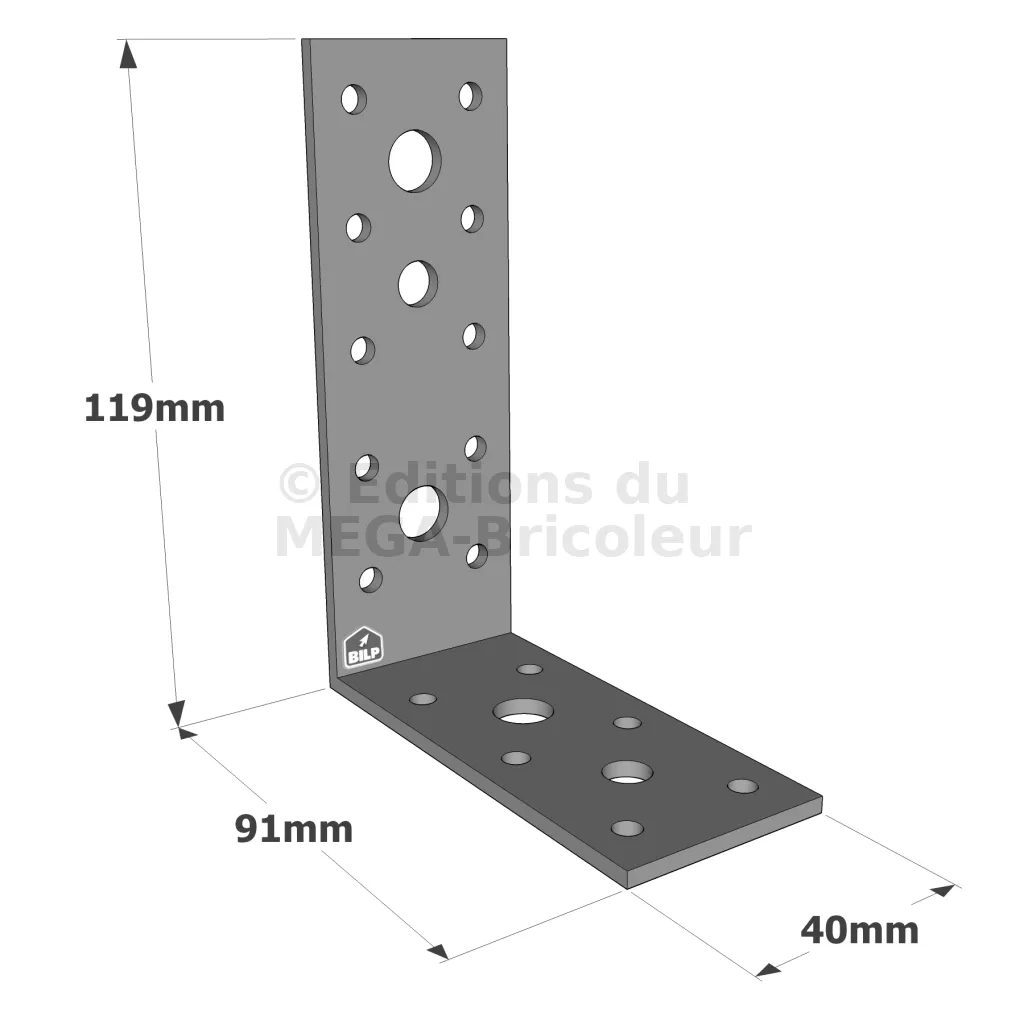 Équerres renforcées CLASSIQUES asymétriques pour le BOIS et le BETON - Réf. AG40312-R