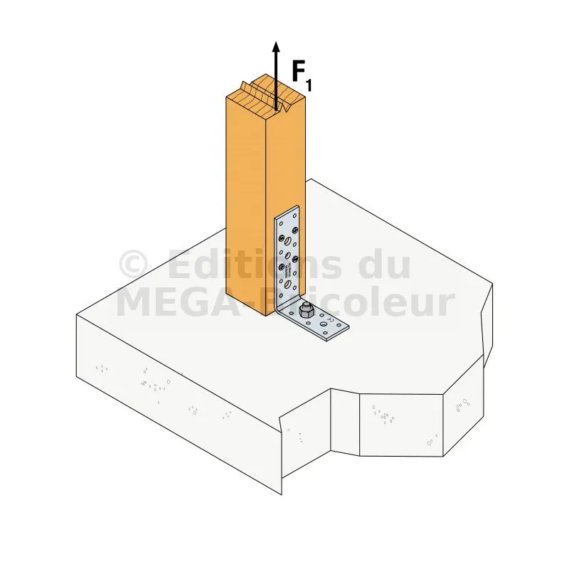 3. Si le support est en bois, l’équerre est aussi pointée ou vissée sur celui-ci,