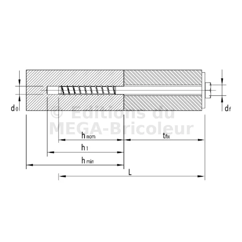 Vis HECO MULTI-MONTI-PLUS S - tête hexagonale avec rondelle DIN 440 - zingué blanc - D12 x L280 - Réf. 48469