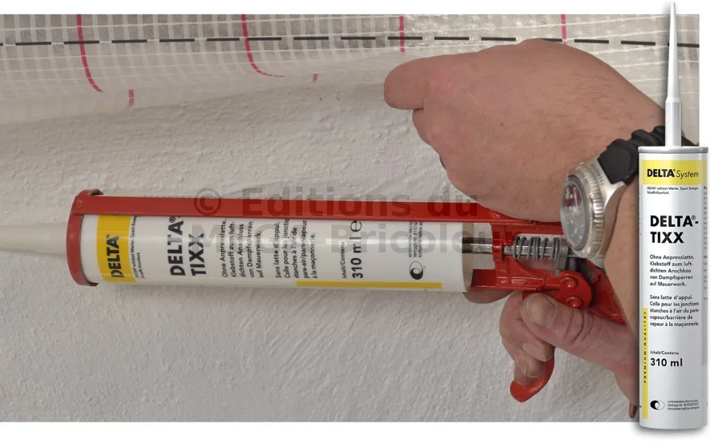 COLLE EN CARTOUCHE ÉLASTIQUE DELTA® : un collage durablement étanche à l’air des pare-vapeur pour une application intérieure parfaite !