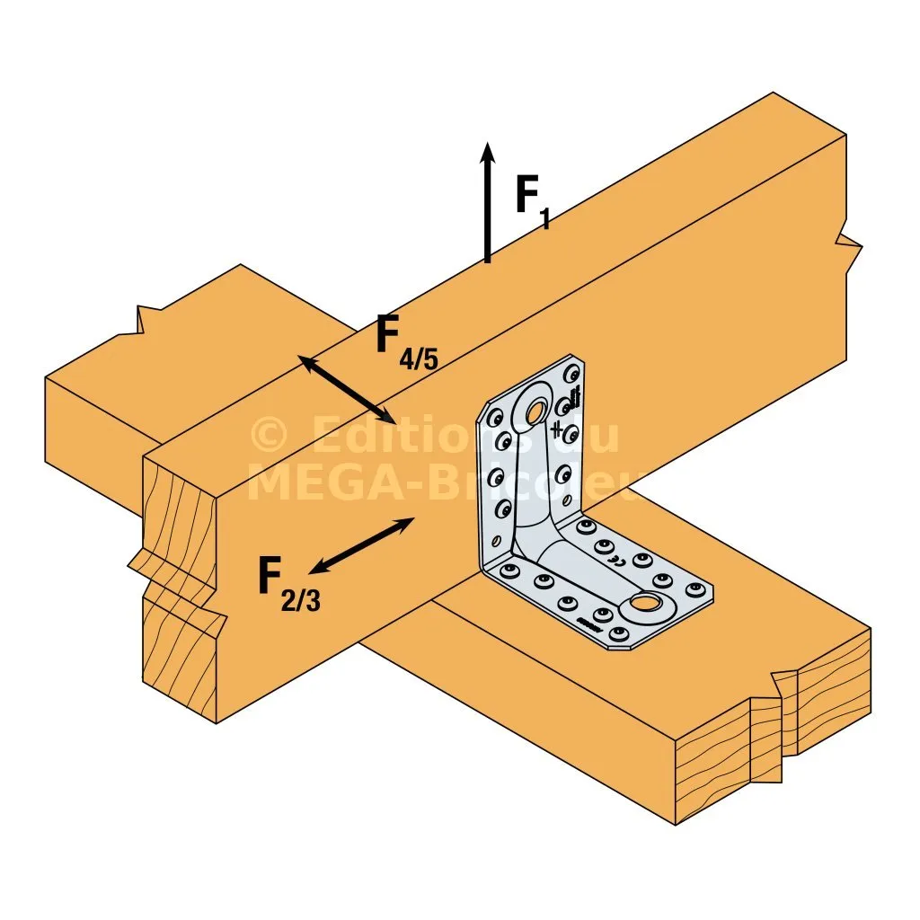 Pour obtenir les valeurs de résistance pour une seule équerre, il convient de diviser par deux les valeurs du tableau ci-dessus à condition que la poutre portée soit bloquée en rotation. Consulter notre ETE-06/0106 si la poutre est libre en rotation.