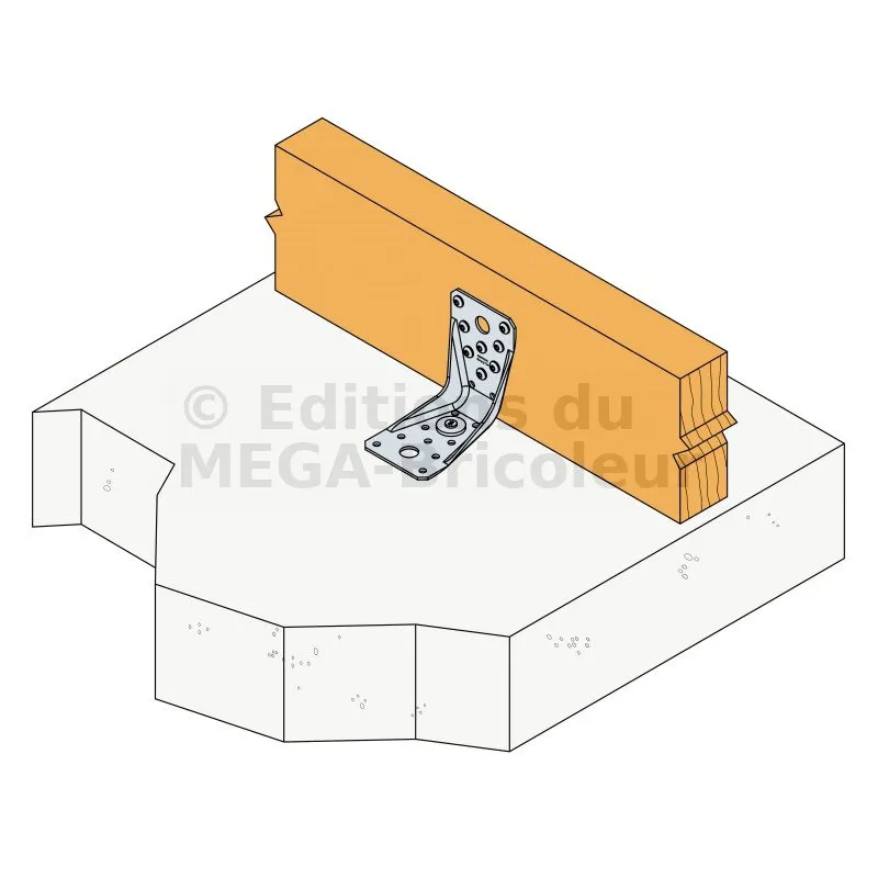 3. Si le support est en bois, l’équerre est aussi pointée ou vissée sur celui-ci