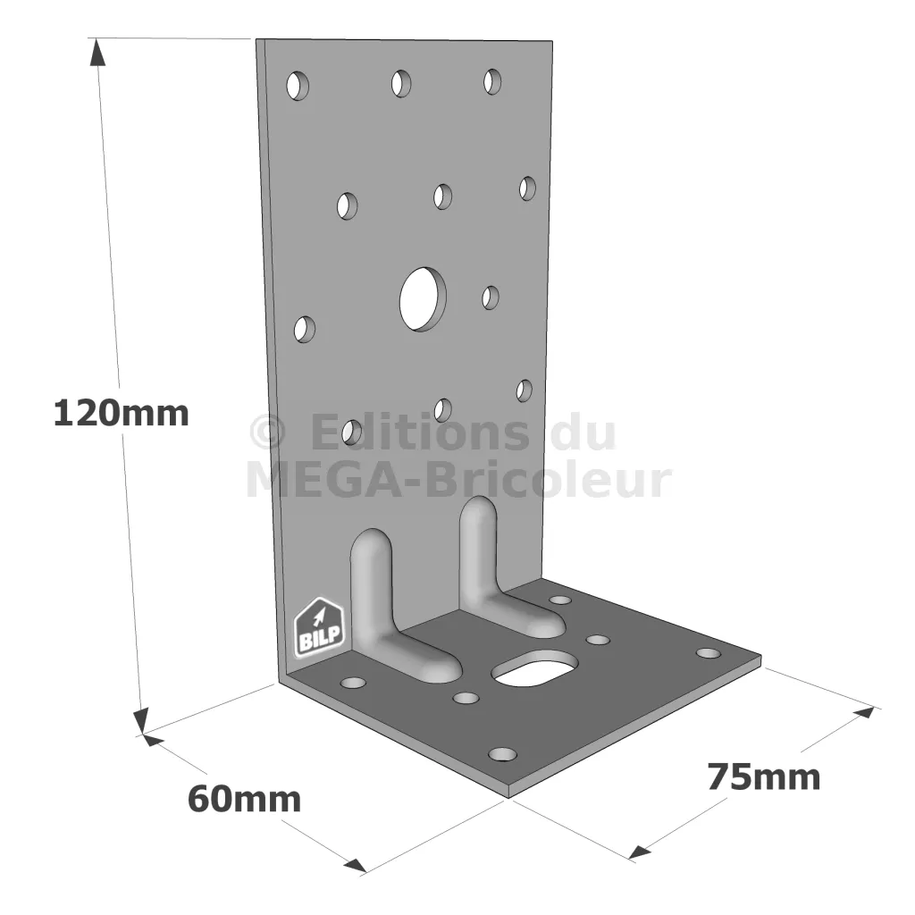 Équerres renforcées CLASSIQUES asymétriques pour le BOIS et le BETON - Réf. E6/2.5