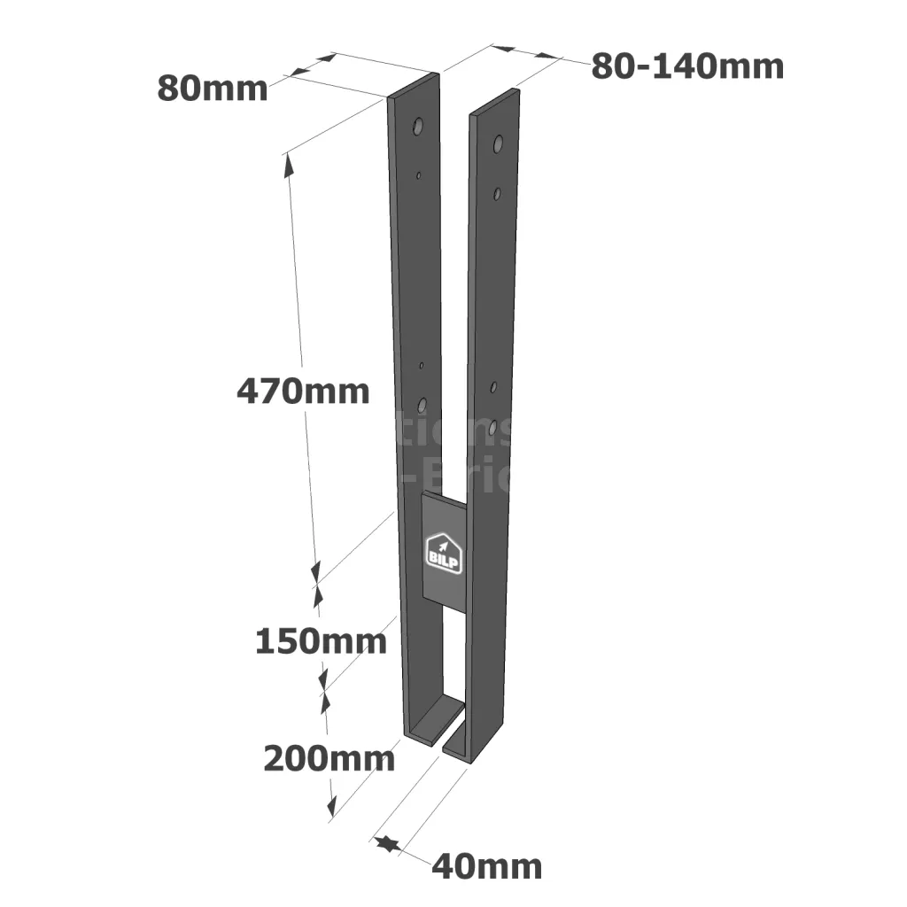 Les pieds de poteaux CMS sont constitués de deux pièces en acier galvanisé pour une utilisation en extérieur. Il s’agit d’un pied de poteau réglable en largeur pour des poteaux allant de 80 à 140 mm.
