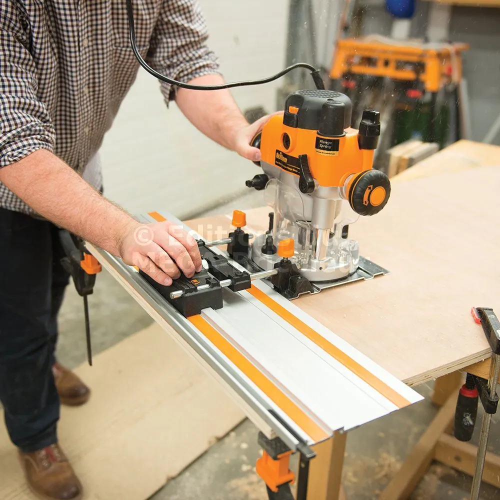 Le plateau support chromé et les rails de guidage donnent une structure robuste lorsqu’ils sont combinés au plastique résistant aux chocs. Mécanisme de fixation rapide assurant un temps de fixation minimal et une simplicité de fixation sur les rails. Compatible avec l’ensemble de la gamme des défonceuses Triton.