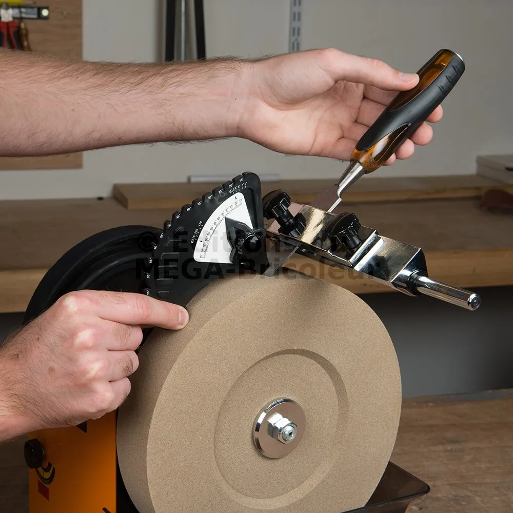 Pour être utilisé avec le touret d’affûtage à eau Triton TWSS10. Aide à configurer le parfait angle d’affûtage. Permet de réutiliser avec précision les angles spécifiques du chanfrein.