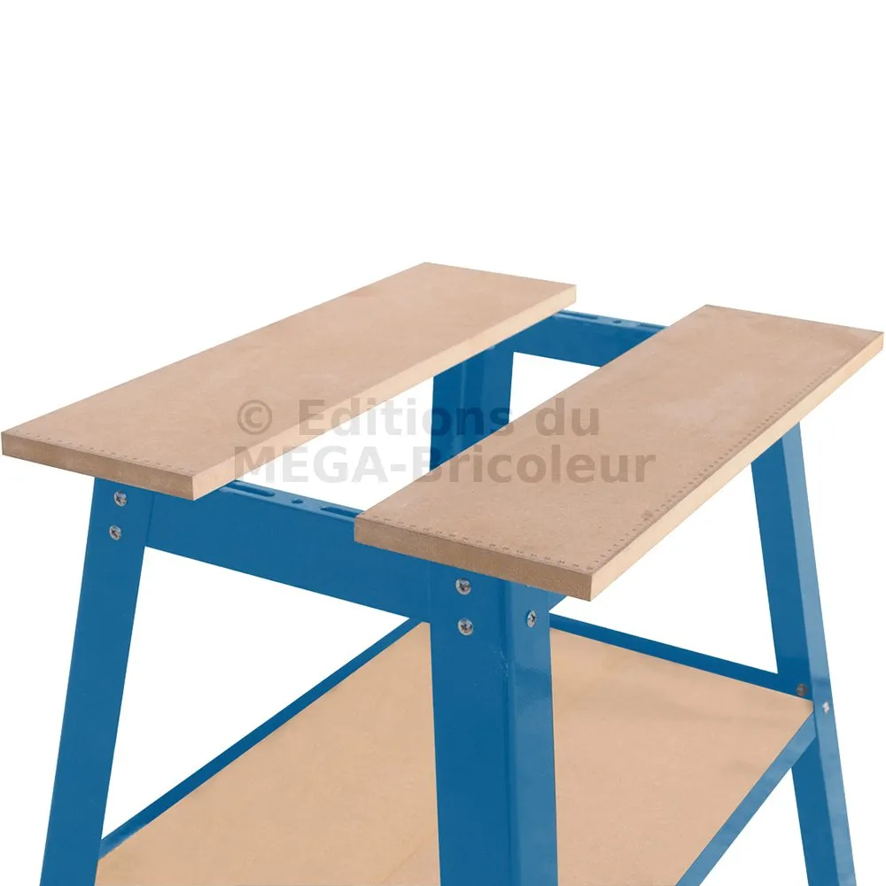 Support universel ajustable pour machine-outil. Châssis en acier robuste, finition époxy, offrant un support stable pour les scies à table, scies à onglets et autres équipements d’atelier. La plate-forme supérieure à 2 éléments à indications angulaires et de longueur est extensible dans la largeur (de 360 à 520 mm). Pieds caoutchoutés pour réduire les vibrations et protéger les surfaces.