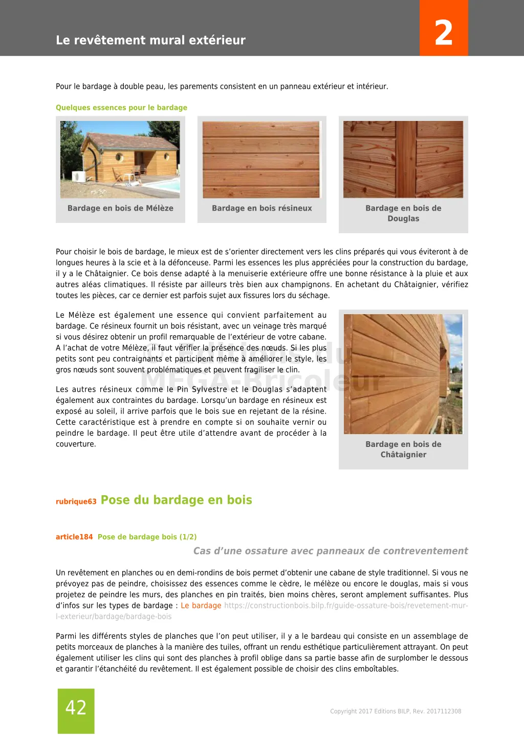 - Le bardage en bois massif ou lamellé collé