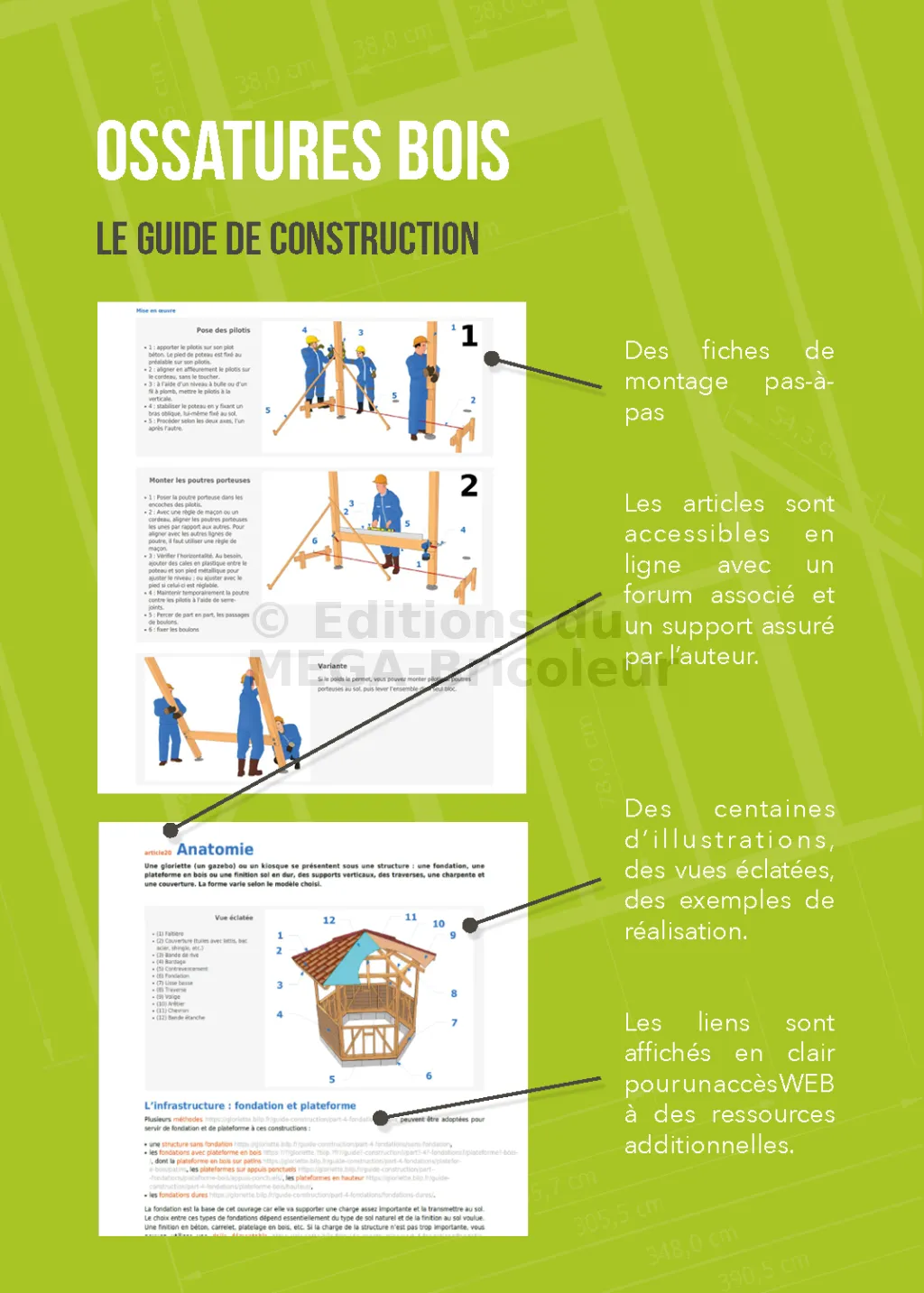 Pour construire un abri qui tient debout pour longtemps, il faut réaliser une conception de structure dans les règles de l’art. Il n’y a pas de place pour l’improvisation. Ce guide vous permettra de déterminer tous les éléments constructifs (section, portée, assemblages, etc.) comme un professionnel mais selon une méthode accessible pour tout à chacun : ossature des murs, charpente et toiture, escalier, revêtement mural extérieur, etc. De nombreux conseils de Mise en œuvre, des trucs et astuces de pros y sont dévoilés.
