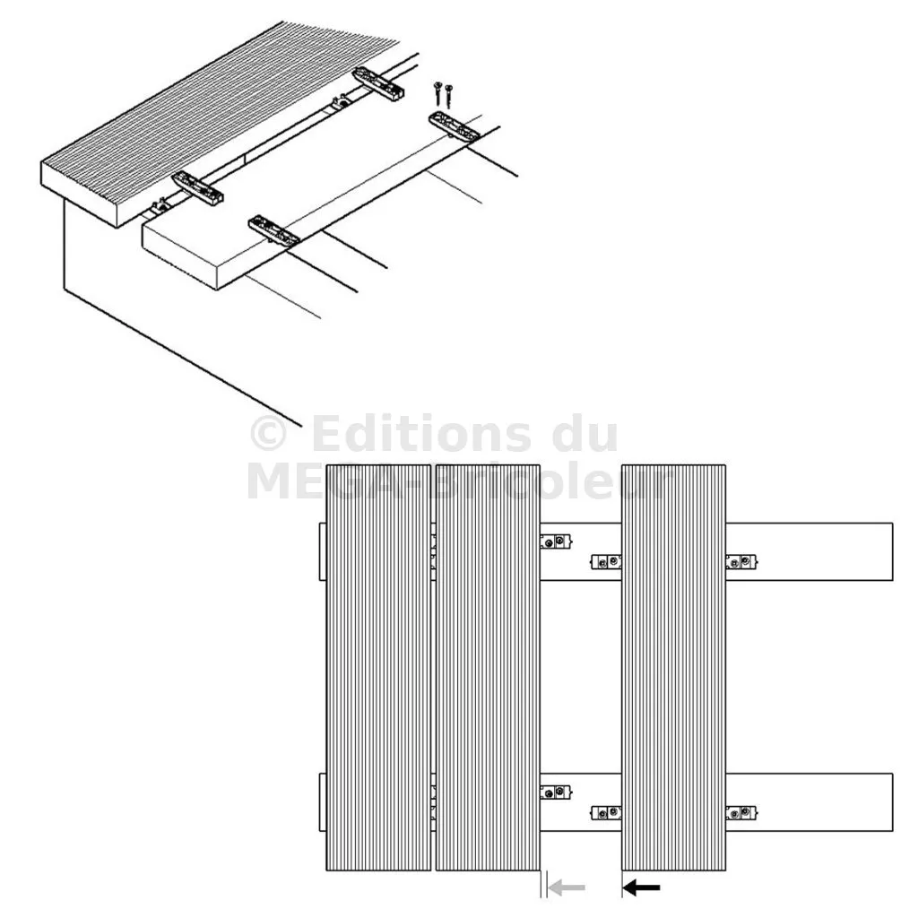 La surface et les côtés des lames de terrasse restent impeccables grâce à l‘utilisation de ces clips invisibles. Ce qui assure une plus grande longévité à la terrasse. De plus la hauteur des clips offre une aération parfaite de la sous-construction.